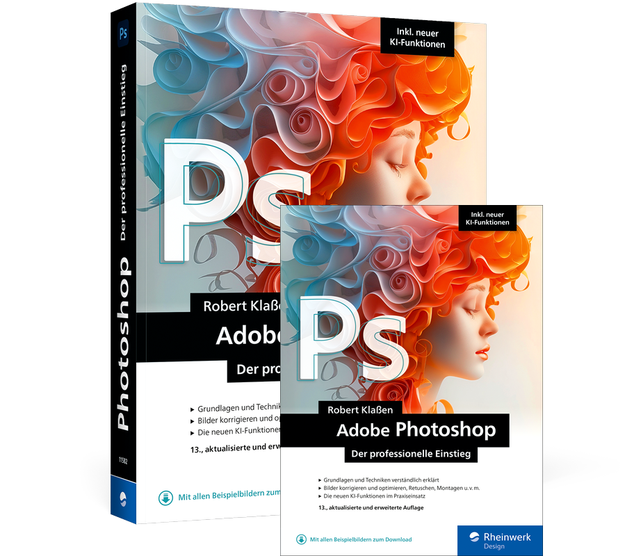Dieses Buch ist perfekt für Einsteiger und Einsteigerinnen, die sich eine solide Basis in Photoshop erarbeiten wollen. Mit klar strukturierten Kapiteln und verständlichen Erklärungen erleichtert es den Einstieg in die Welt von Photoshop. Über 70 Schritt-für-Schritt-Anleitungen helfen Ihnen, grundlegende Arbeitsweisen zu erlernen und sofort anzuwenden. Darauf aufbauend gibt Ihnen Robert Klaßen auch eine Einführung in alle Werkzeuge und Funktionen und in fortgeschrittene Techniken wie Farbkorrekturen, Freistellungen, Text- und Vektorgrafik-Werkzeuge, Effekte, Filter u. v. m. Besonders interessant: Erleben Sie die neuen KI-Funktionen wie Text-zu-Bild-Prompts, Generatives Füllen und Erweitern im Praxiseinsatz. So werden Sie zum Photoshop-Profi.