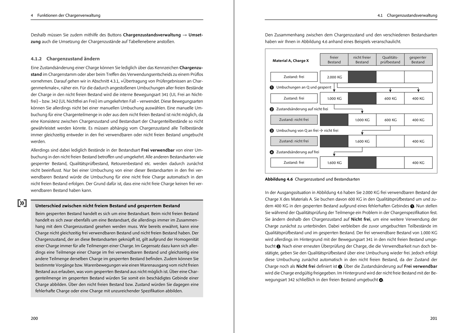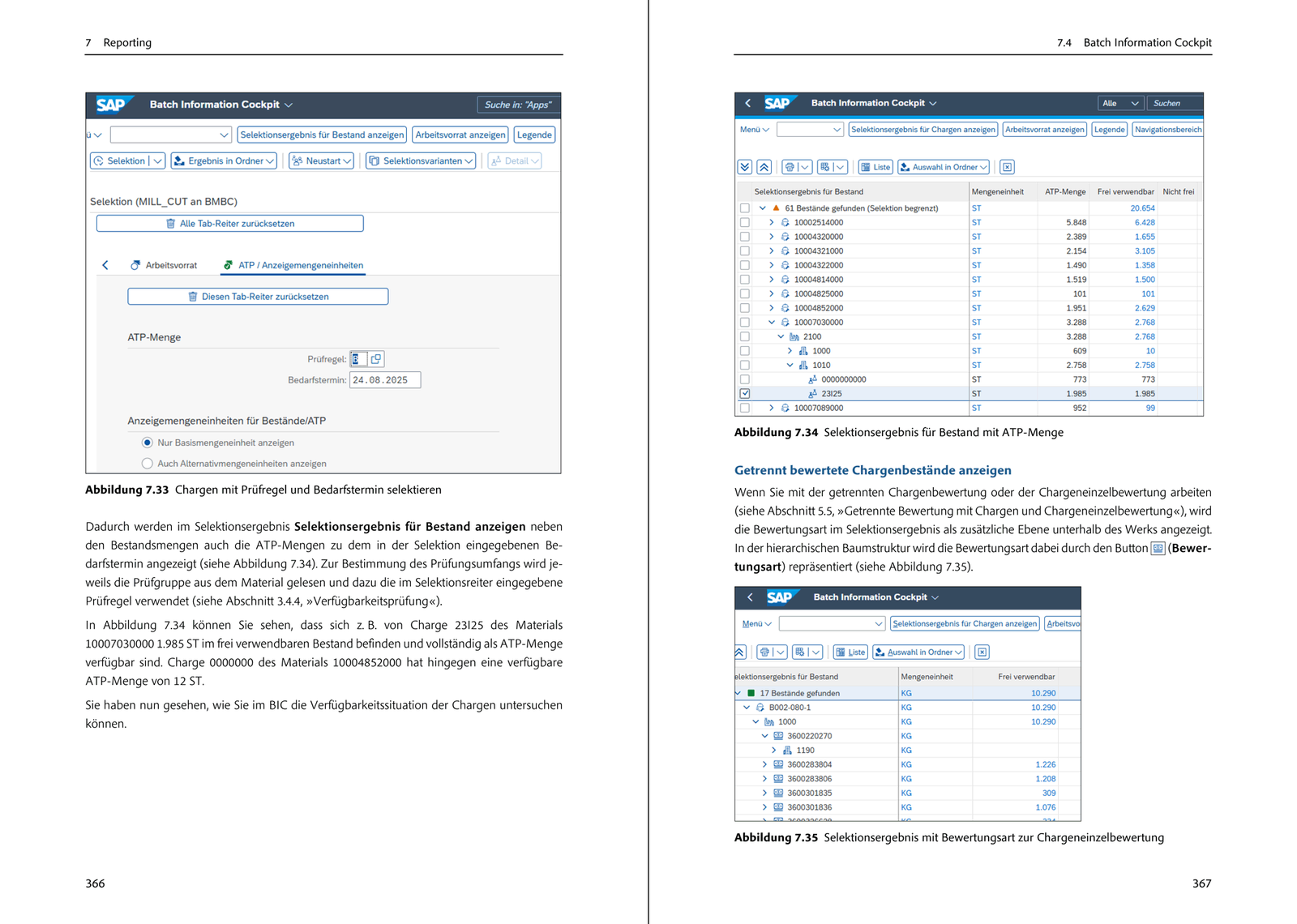 Mindesthaltbarkeitsabwicklung, Chargenhistorie, Ursprungschargen – das Buch stellt alle wichtigen Zusatzfunktionen vor. Reporting-Möglichkeiten wie das Batch Information Cockpit kommen ebenfalls nicht zu kurz.