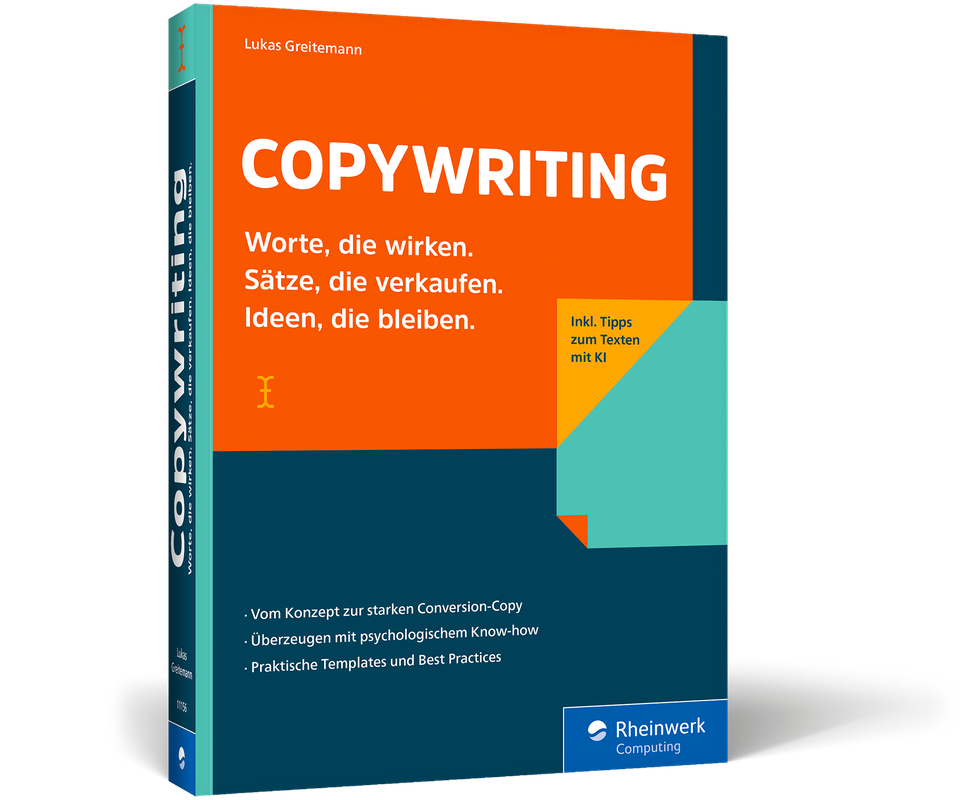 Worte mit echtem Mehrwert. Sätze, die im Kopf bleiben. Texte, die deine Kunden zum Handeln bewegen. So geht gutes Copywriting! In diesem Handbuch lernst du, wie du dein Angebot überzeugend und gewinnbringend kommunizierst und vermarktest – egal ob du völlig neu in der Welt des Werbetextens oder fortgeschrittener Marketing-Spezialist bist. Lukas Greitemann führt dich in das Handwerk erfolgreicher Copy ein und zeigt dir verständlich und praxisnah, wie du deine Texte in effektive Conversion-Hebel verwandelst. Von den Verkaufs-Basics über die psychologischen Prinzipien überzeugender Texte bis zu Praxistipps für den Berufsalltag, erprobten Text-Templates und dem Einsatz von KI.