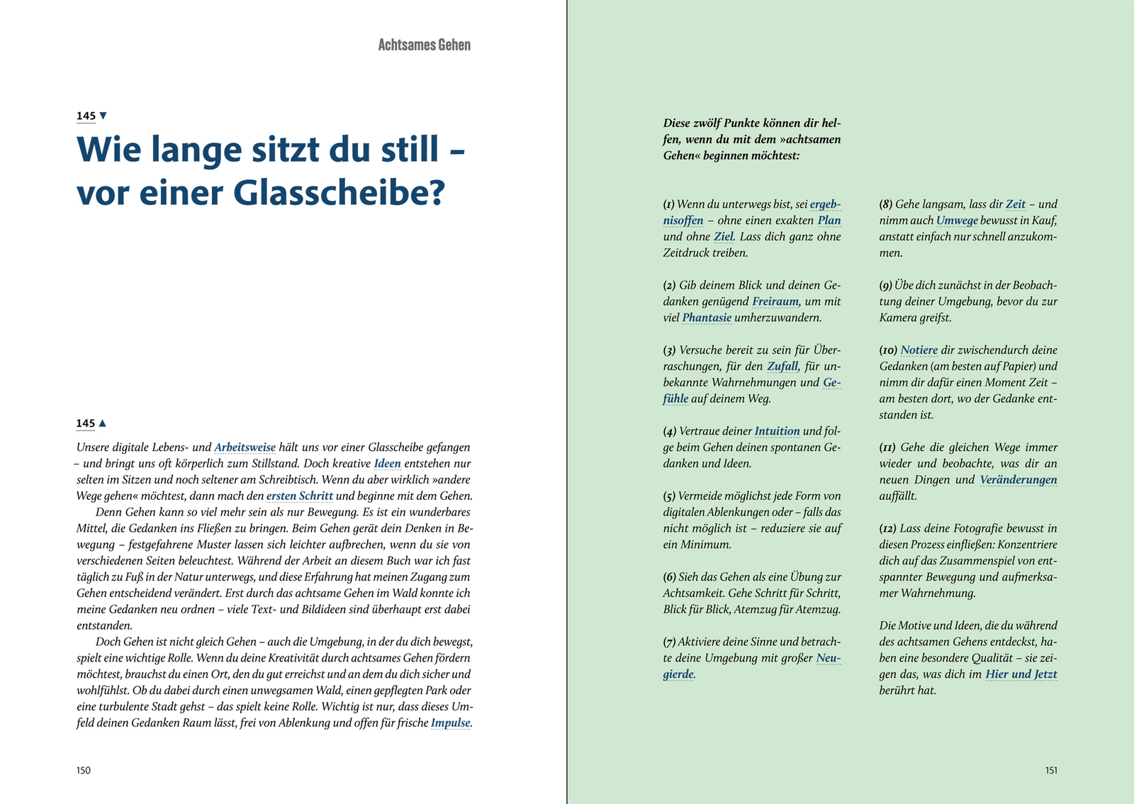 Jedes Thema steht für sich. Du kannst am Anfang beginnen oder einfach irgendwo einsteigen. Folge deinem eigenen Rhythmus – ganz so, wie du fotografierst.
