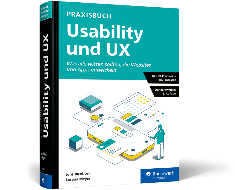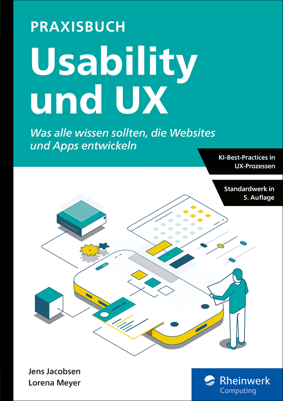 Die Anleitung für alle, die neue Websites und Apps erstellen oder verbessern möchten! In diesem Buch finden Sie alles, was Sie für die Planung und Umsetzung nutzungsfreundlicher Web-Anwendungen brauchen. Jens Jacobsen und Lorena Meyer stellen Ihnen mit vielen anschaulichen Praxisbeispielen Regeln und Methoden vor, die sich seit Jahrzehnten bewährt haben. Sie zeigen auf, wo KI Ihnen Arbeit abnimmt und wie Sie diese sinnvoll in UX-Prozessen anwenden können. So lernen Sie von Grund auf, was eine gute Gestaltung von Benutzeroberflächen auszeichnet, wie Sie Ihre Seiten navigierbar gestalten, Inhalte zugänglich präsentieren und User begeistern.