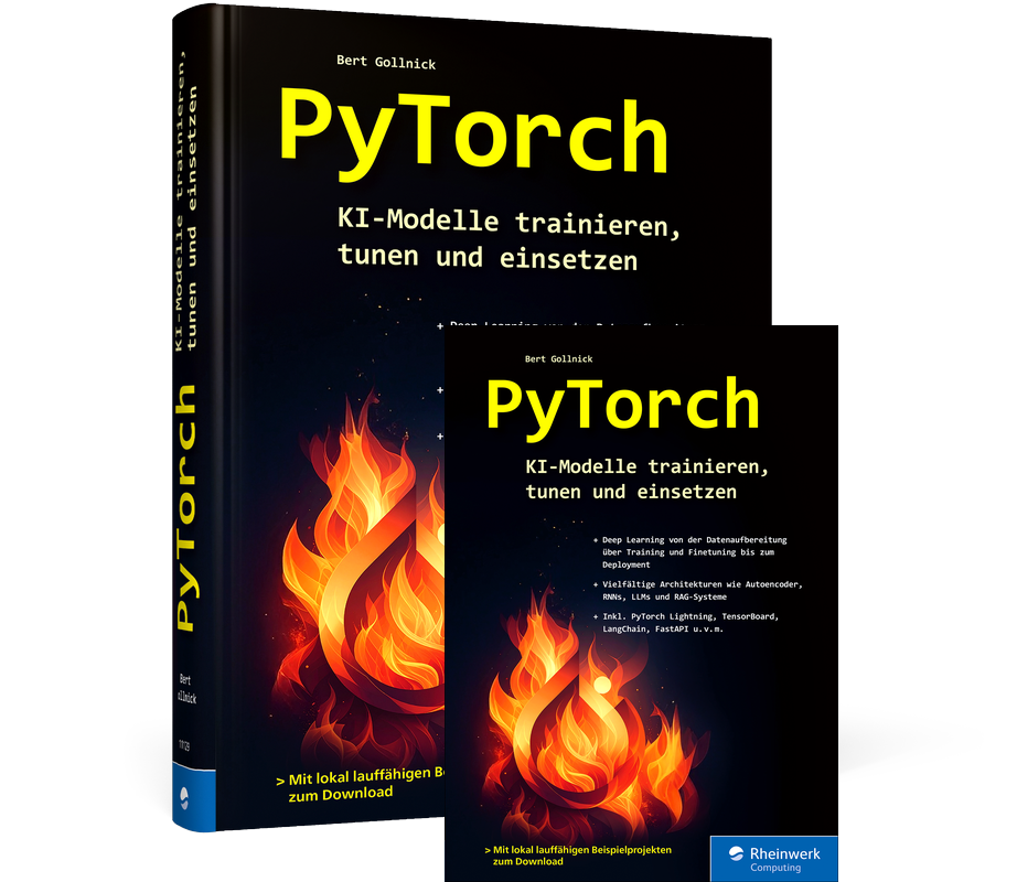 PyTorch-Programmierung professionell! Das meistbenutzte Deep-Learning-Framework in der Praxis: Lernen Sie für spezifische Aufgaben aus realen Projektszenarien, wie Sie mit PyTorch KI-Modelle trainieren, optimieren und produktiv einsetzen. Bert Gollnick zeigt Ihnen in diesem Buch alle einschlägigen Verfahren inklusive Python-Implementierung, von linearer Regression über große Sprachmodelle bis zur Kombination mehrerer Verfahren. Die Anwendungen beinhalten Computer Vision, RAG-Systeme, Zeitreihenanalysen und vieles mehr. Sie evaluieren und deployen Ihre Modelle mit modernsten Methoden und lernen dafür Tools wie FlowML, TensorBoard und FastAPI kennen. Profitieren Sie von vollständigen Codebeispielen, die auf handelsüblicher Hardware lauffähig sind, und entdecken Sie das Zusammenspiel mit PyTorch Lightning, HuggingFace und weiteren Tools.