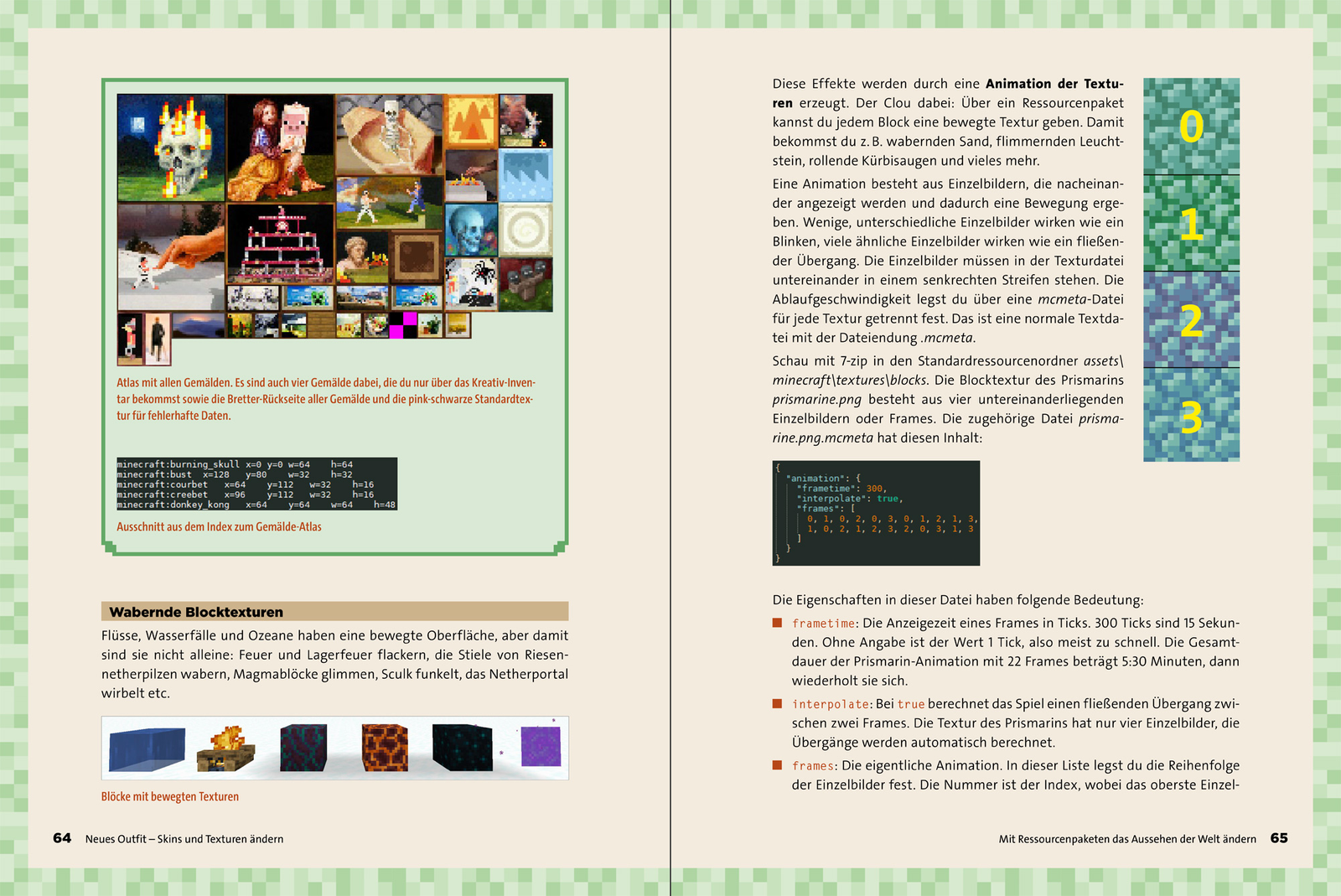 Blicke hinter die Kulissen und erfahre, wie das Spiel die Illusion von Raum, Zeit und Leben erzeugt. Steige in die Programm-Ressourcen ein und verbessere deine Welten mit Skins, Texturen und Geräuschen. Erweitere dein Spiel und installiere Mods, Shader und alternative Launcher.